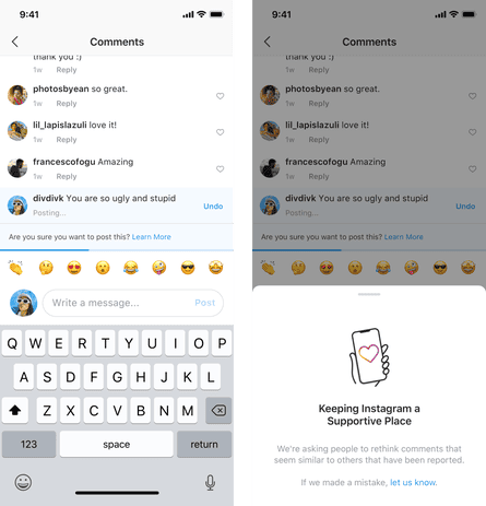 სოციალური ქსელები და მათში გამოქვეყნებული კონტენტი ხშირად ხდება მასიური ბულინგის მიზეზი, რის გამოც ინსტაგრამის მმართველმა გუნდმა გადაწყვიტა, საკუთარი წვლილი შეიტანოს ბულინგთან ბრძოლის საქმეში.
