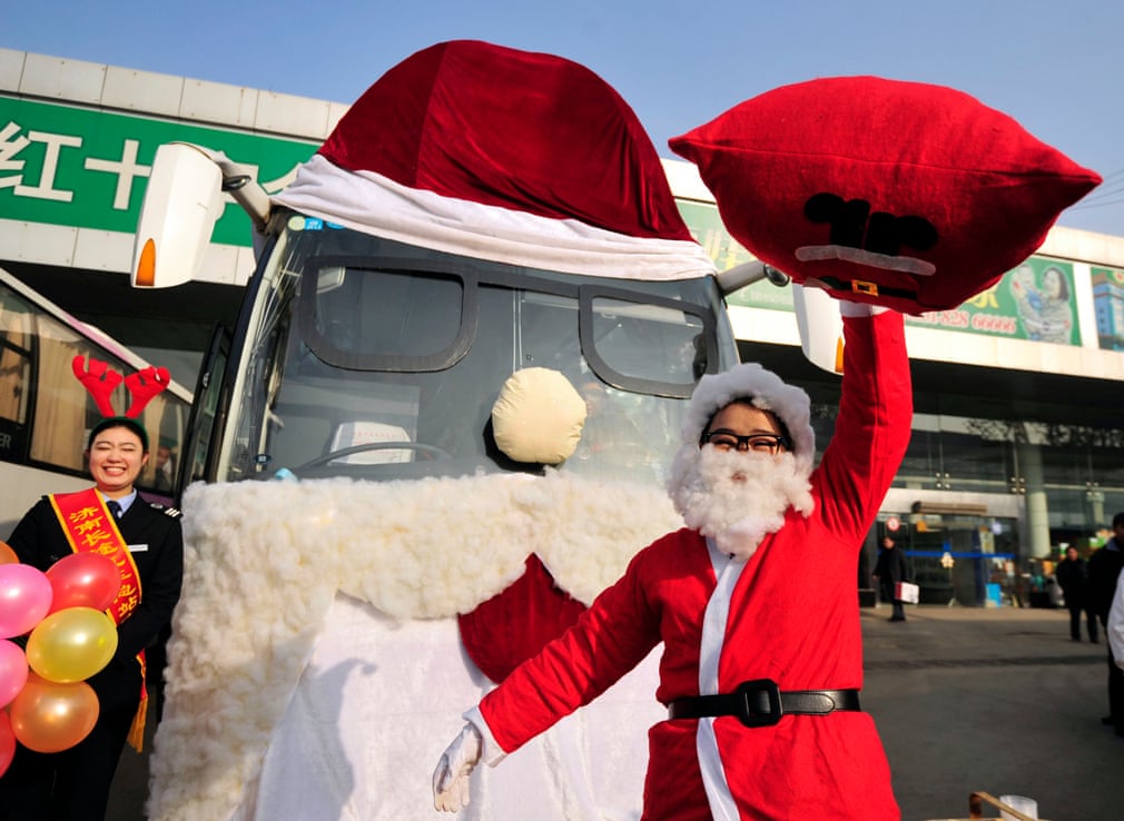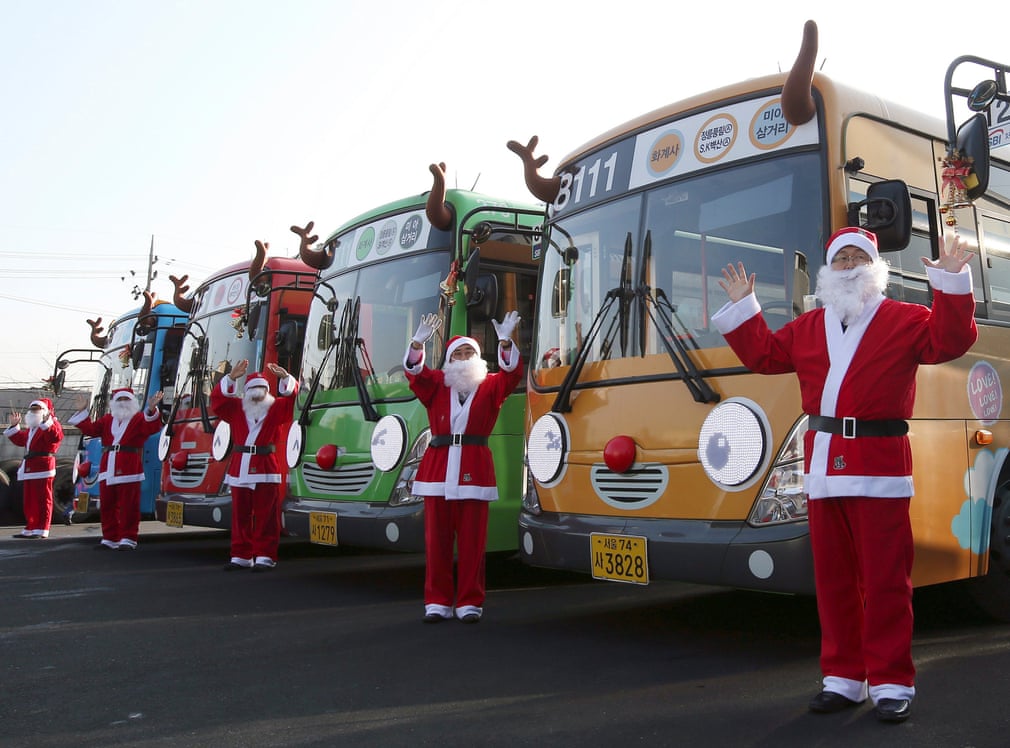 #1 მძღოლები სანტა-კლაუსის ფორმით, ხოლო ავტობუსები ირმების იმიჯით