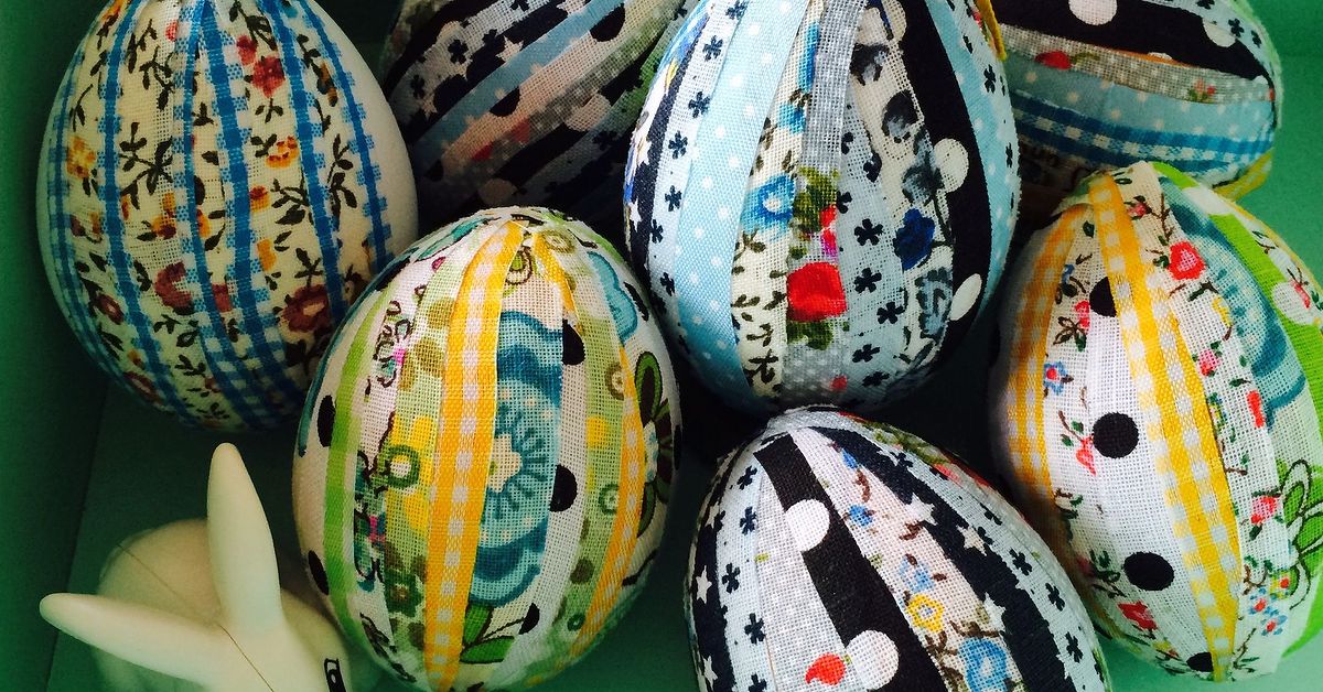 ასევე, ორიგინალური ხერხია მოსართავად ნაჭრების გამოყენება. ამისათვის აბრეშუმის, ბამბისა და შიფონის ქსოვილი გამოგადგებათ. კვერცხს ქსოვილისგან ტომარას ვუკეთებთ და მასში ვსვავთ. იმისათვის, რომ ნაჭუჭზე ნაკეცები არ გაჩნდეს, ქსოვილი კვერცხს კარგად უნდა მოვუჭიროთ. შემდეგ კი ბამბის მასალაში გავახვიოთ.
